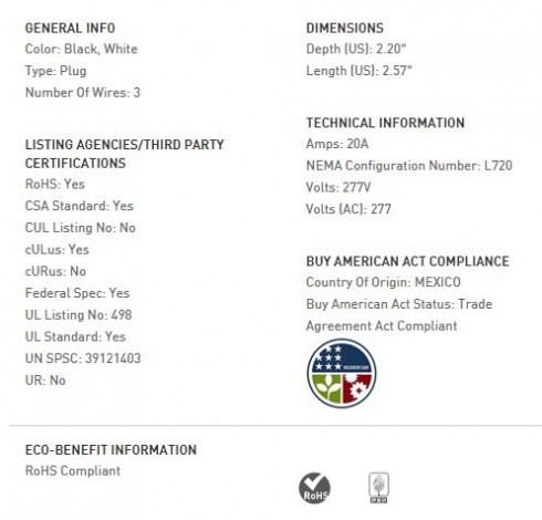 20 AMP NEMA PLUG L720 - BLACK BACK, WHITE FRONT BODY