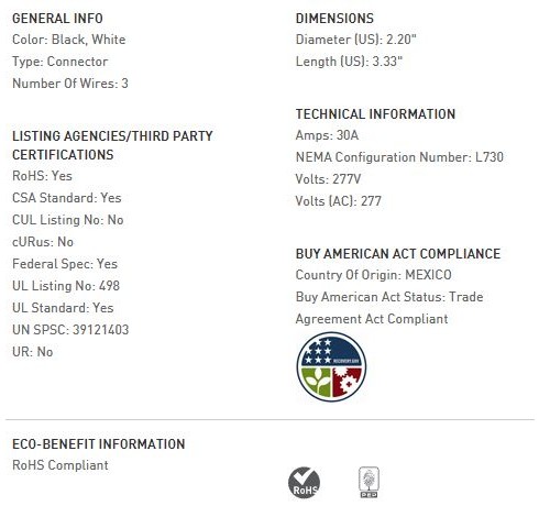 30 AMP NEMA L730 CONNECTOR - BLACK BACK, WHITE FRONT BODY