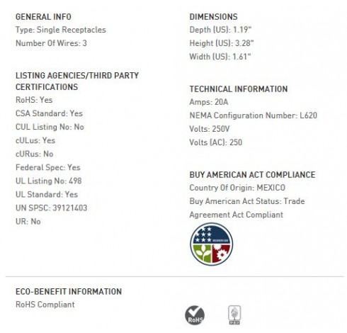 20 AMP NEMA L620 SINGLE RECEPTACLE