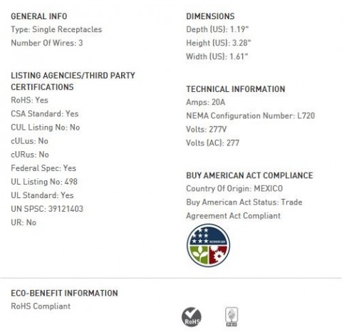 20 AMP NEMA L720 SINGLE RECEPTACLE