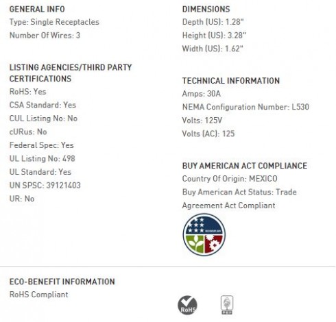 30 AMP NEMA L530 SINGLE RECEPTACLE