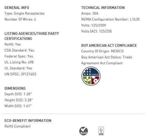 30 AMP NEMA L1430 SINGLE RECEPTACLE