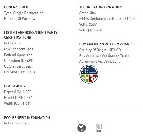 30 AMP NEMA L1530 SINGLE RECEPTACLE