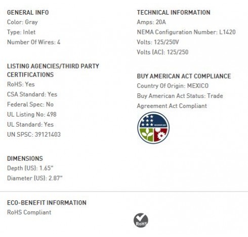 20 AMP L1420 FLANGED INLET, GRAY