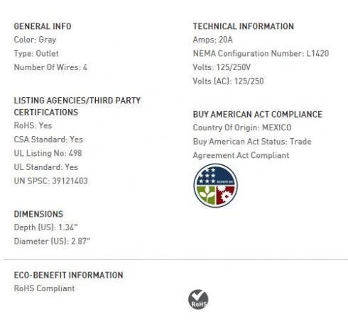 20 AMP L1420 FLANGED OUTLET, GRAY