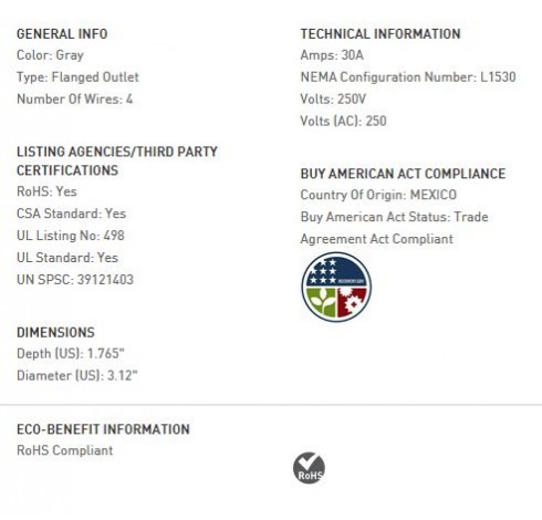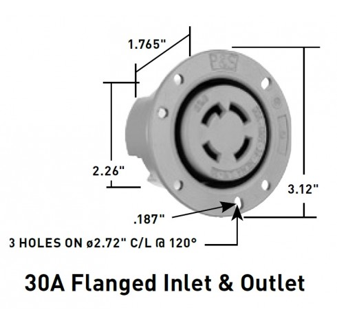 30 AMP L1530 FLANGED OUTLET, GRAY