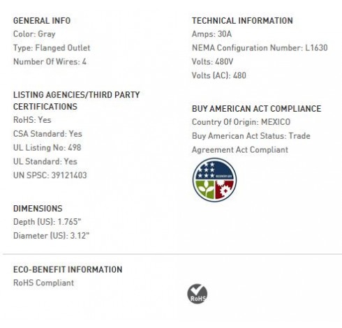 30 AMP L1630 FLANGED OUTLET, GRAY