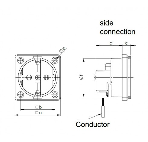 Panel socket, 250V 16A 2P+E, VDE, OVE 인증, 백색